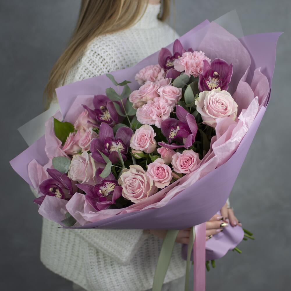 Нежный букет с орхидеями и розами